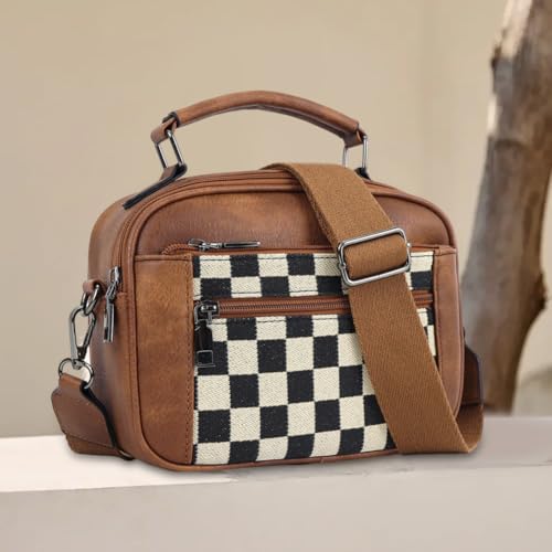 • MATERIAL: This checkered crossbody bag is made of faux leather with polyester lining, tear-resistant and durable
