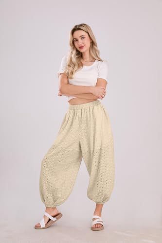 More information about utcoco Womens Eyelet Lace Beach Palazzo Harem Pants Casual Loose Embroidery High Waist Cotton Trousers with Pockets