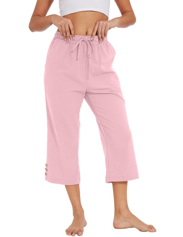 • Unique Design: Womens linen capri pants . linen pants with micro-elastic fabrics, these pants offer a relaxed fit with an elastic waisted. Drawstring high-rise elastic waistband provides a snug fit and better tummy control. Loose-fitting pants with a button embellishment. Make you agile and stylish.