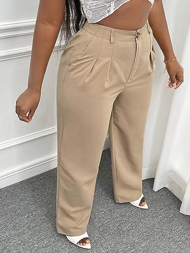 Floerns Women's Solid Straight Leg High Waist Business Work Trousers Pants 4