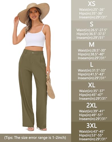 HOT ! Women's Wide Leg Linen Pants - 29" 31" Dress Work Office Pants Casual Slacks Business Summer Pants with Pockets