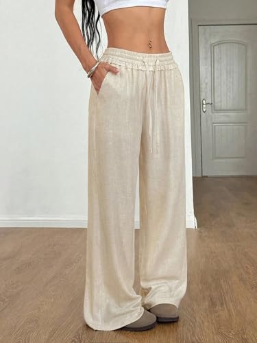 • Plain / Wide Leg / Casual / No / Extra Long / Drawstring Waist / Ultra Low Waist / Drawstring, Pocket / Unlined / Non-Stretch / Apricot