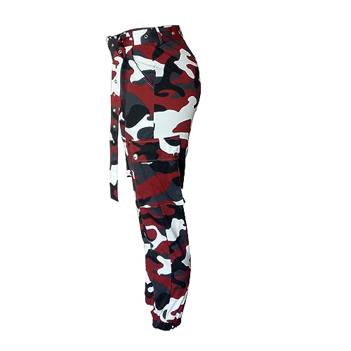 HOT ! MESLIMA Women's Camo Pants High Waist Slim Fit Cargo Trousers with Pocket Camouflage Long Sweatpant with Belt