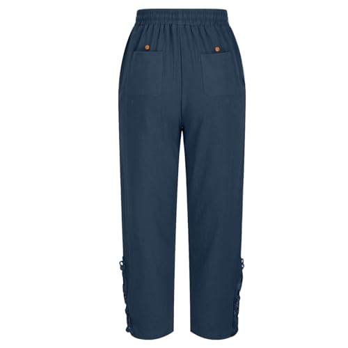 More information about Womens Boho Cotton Linen Capri Pants Lace Stitching Cropped Pants High Rise Vintage Crop Trousers Casual Jogging Pants