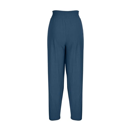 Women’s Casual Cotton Linen Harem Pants Trendy High Waised Palazzo Boho Pants with Pockets Summer Vacation Trousers 5