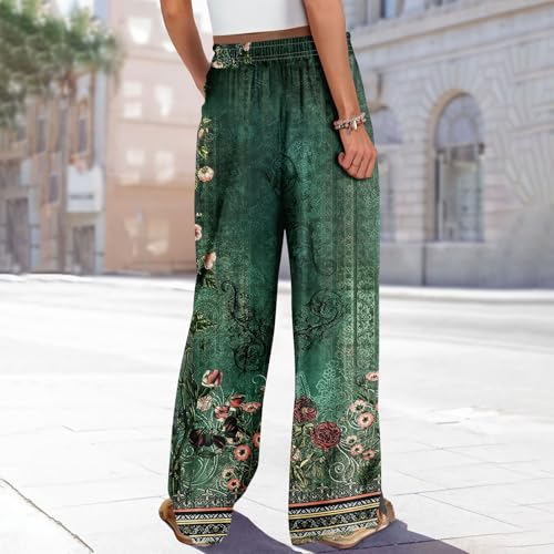 HOT ! HXHYQKP Wide Leg Pants for Women Summer Beach Palazzo Pants High Elastic Waist Drawstring Trouser with Pockets