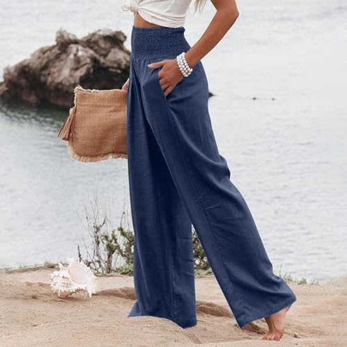 Women's Fashion Loose Casual Buttoned Wide Leg Dressy Loose Fit Pants 4