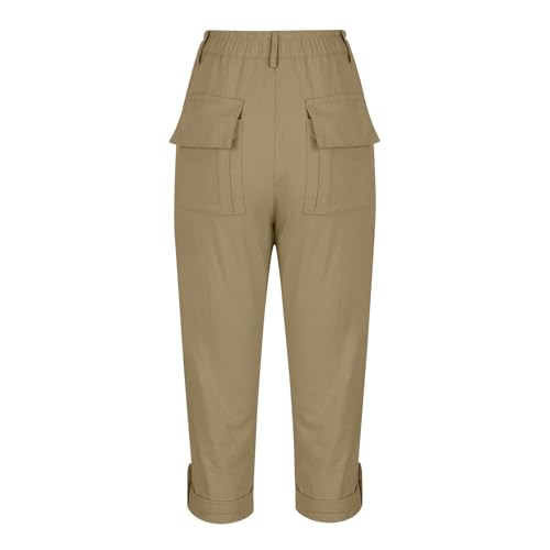 Dressy Capri Pants for Women Button Elastic Waist Capris Chino Pants Summer Knee Length Bermuda Shorts with Pockets 4