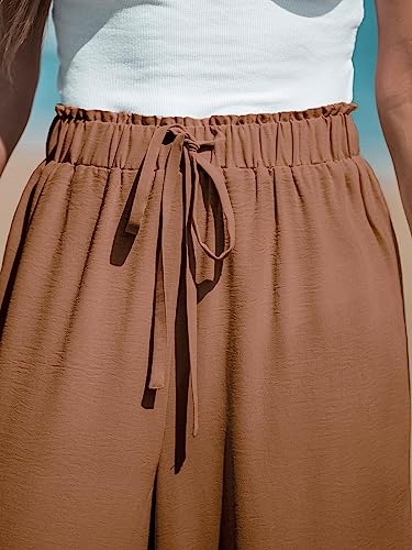 CUPSHE Women Wide Leg Pants High Waisted Trousers Linen Palazzo Lounge Beach Cover Ups Flowy Pants,L Brown 2