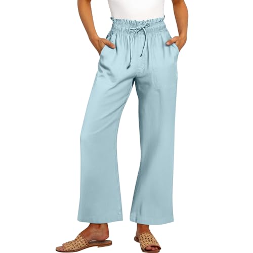 HOT ! Summer Linen Pants for Women 2025 Work Loose Tie High Elastic Waist Trousers with Pocket Pleated Casual Soft Beach Pants
