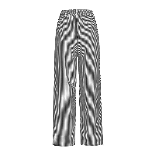 HOT ! hlysgo Womens Pants Trendy Stripes Print Drawstring Waist Straight Trousers Pants Summer Loose Fit High Rise Casual Pants