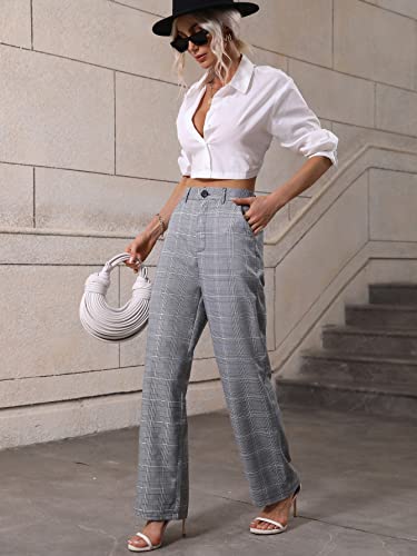 HOT ! SweatyRocks Women's Plaid Print Dress Pants High Waisted Wide Leg Suit Pants with Pocket