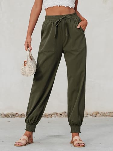 CUPSHE Women Pants Tapered Leg Smocking Drawstring High Rise Pant Casual Summer 5