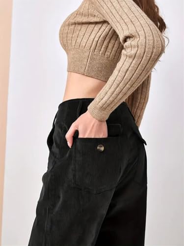 HOT ! Women's Corduroy Wide Leg Pants Casual High Waisted Vintage Lounge Trousers Baggy Pants for Women with Pockets