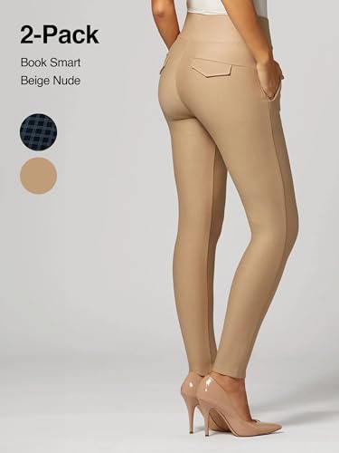HOT ! Conceited 2-Pack Stretch Slacks for Women - Wear to Work - Slim Leg Dress Pants with Pockets - Book Smart, Khaki - (X-Large)
