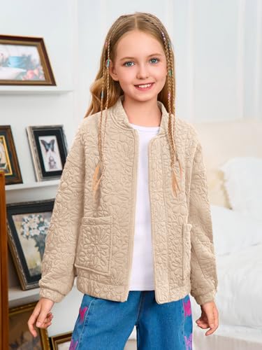 Haloumoning Girls Bomber Jacket Kids Cute Jacquard Zip Up Jackets Fashion Lightweight Outerwear with Pockets 6