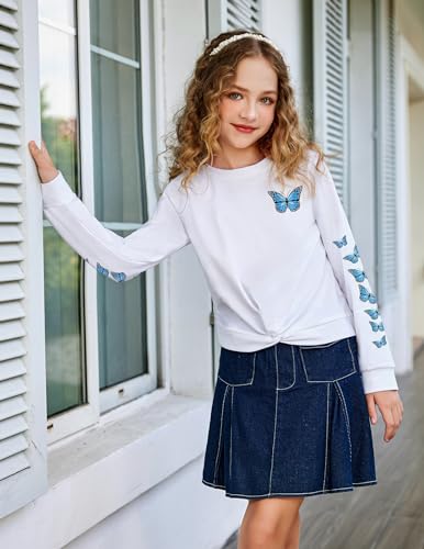 Arshiner Girls Casual Twist Front Lightweight Sweatshirt Tie Dye Printed Long Sleeve Crop Tops Pullover 6