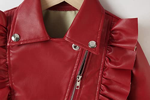 Happy Cherry Baby Girl Faux Leather Motorcycle Jacket Cute Ruffle Spring Fall PU Coat 1-5 Years 5