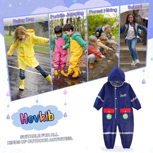 • Easy To Put: Kids raincoat with zipper closure for quick changes before and after playing. With the Polyester material, dirt and mud rinse off easily from this rain suit.