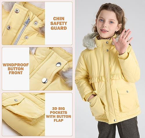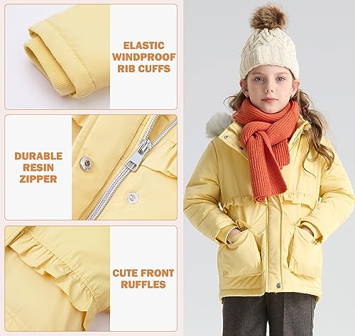 SOLOCOTE Toddlers and Girls Winter Coat Water-Resistant Faux Fur Hood Sherpa Lining Elastic Cuffs with Pockets for Kids 6