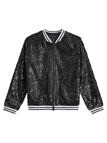 Hularka Kids Girls Sequins Bomber Jacket Long Sleeve Party Glitter Baseball Jackets Zip Up Coat Sparkle Outerwear 5