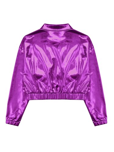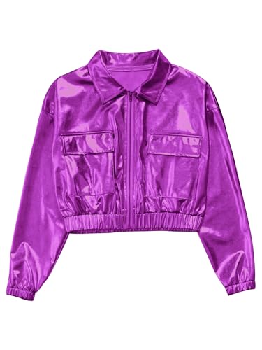Kids Girls Boys Shiny Metallic Jacket Zipper Long Sleeve Jazz Hip Hop Dance Tops Sweatshirt Coat Outerwear 5