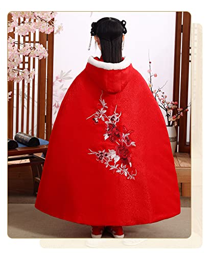 Red Embroidery Cape with Hood Chinese Style Winter Coat for Girl 4-16 Years 4