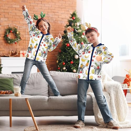 Lemur Fruit and Tropical Pattern Toddler Fleece Jacket Girl Boys Hooded Fleece Jacket Coat Warm Outwear Zip-up 3-10T 4