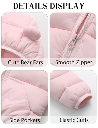 Happy Cherry Toddler Boy Girls Quilted Lightweight Jacket with Bear Ear Packable Puffer Coat Zip Up Hooded Outerwear 1-5 1