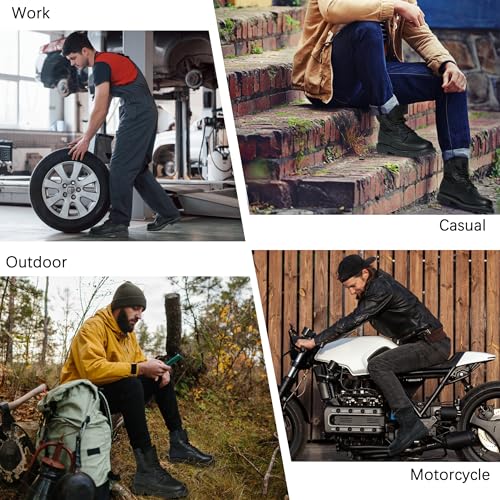 • Classic Legacy Reborn:WIDEWAY work boots for men are modern descendants of Combat military boots, upgraded with triple-density Goodyear outsole construction and a layered puncture shield - 2.5mm Kevlar-reinforced midsole stops 90% of nail penetrations in ASTM F2413-24 testing. The redesigned upper retains soft toe protection while adding micro-perforations on neckline for 40% better airflow, making them viable for summer job sites and casual life