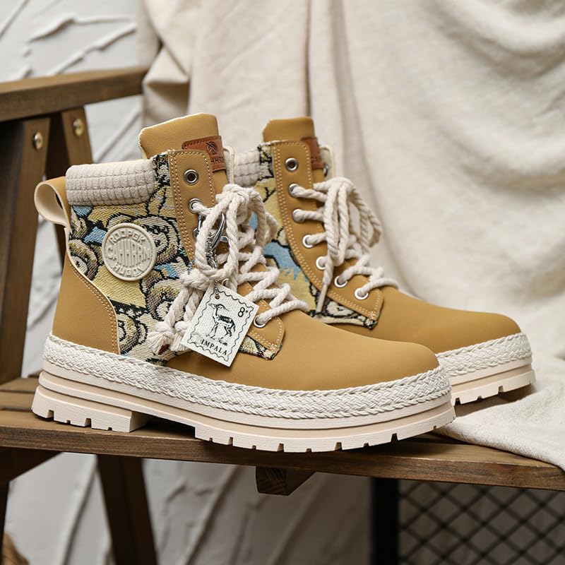 • DESIGN FEATURES: Unique combat boots with decorative teddy bear pattern panels, braided rope trim detail, and distinctive platform sole for a trendy look