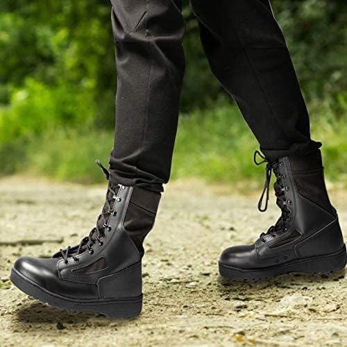 • Ergonomic design: Insole is U-shaped, the reinforce belt were designed in place of the ankle, perfect fit foot. Boot wrapping with high density sponge adds calf comfort, the vamp notch design makes the black tactical boots more flexible in walking