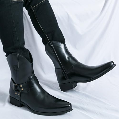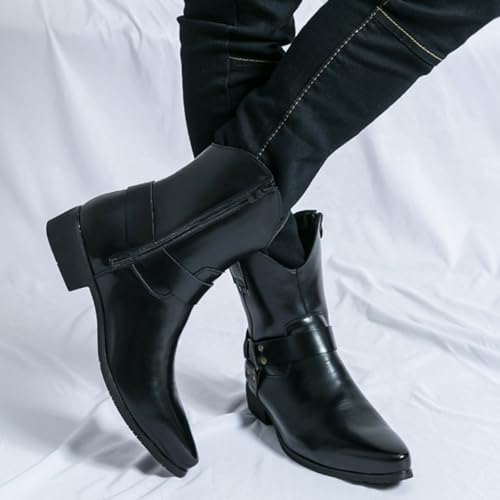 Mens Retro Pull On Chukka Ankle Boots with Side Zipper Boots High-Top Pointed Toe Non-Slip Shoes for Casual Dress Prom Party 6