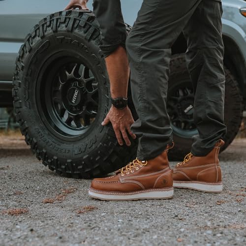 • 【Durable Oiled Full Grain Tumbled Leather】Wedge moc toe work boots utilize authentic full-grain leather uppers for the ideal combination of toughness and suppleness. In contrast to artificial components, full-grain leather provides inherent waterproofing and promotes natural ventilation, thereby maintaining coolness, as well as ensuring dryness and comfort in humid conditions. Oiled full-grain tumbled leather looks better with age.