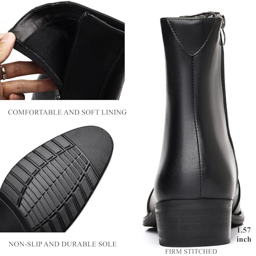 • 【Non-slip & Sturdy Outsoles】: Ankle boots' forefoot features a groove pattern rubber outsole, and the heel is reinforced with wear-resistant rubber, ensuring outstanding slip resistance and long-lasting durability. The carefully measured heel height guarantees a confident and stable stride.