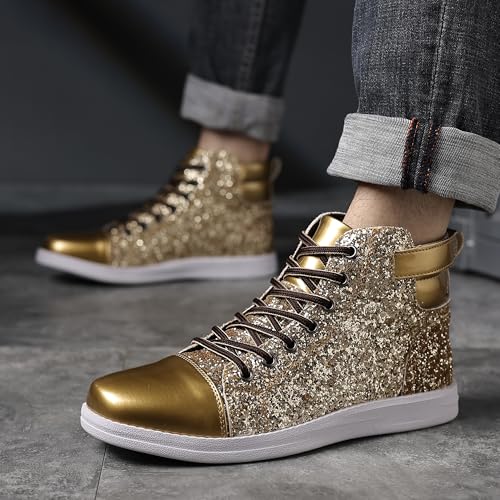 Trsorini Mens Glitter Shoes Sparkly High-top Sneakers Bling Sequin Shiny Men Lace-up Shoes 5