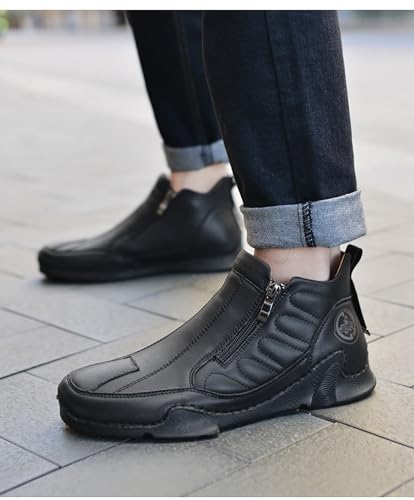 Men's Leather Slip-On Walking Ankle Boots Outdoor Non Slip Double Zipper High Top Driving Work Boots 6