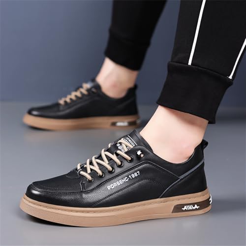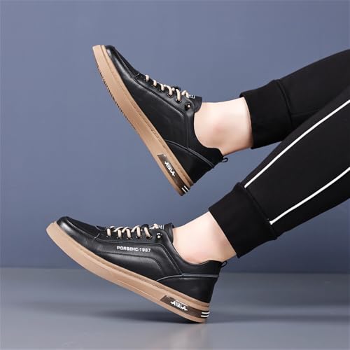 Men's Genuine Leather Walking Shoes Soft Breathable Dress Sneakers Low Top Slip on Non-Slip All-Match Casual Shoes 7