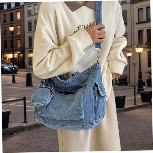HOT ! Denim Bag for Women Casual Denim Crossbody Bag Multi-pocket Jeans Shoulder with Tote & Hanging Pouch Large Capacity Zipper Closure Jeans Purse, Gifts for Women