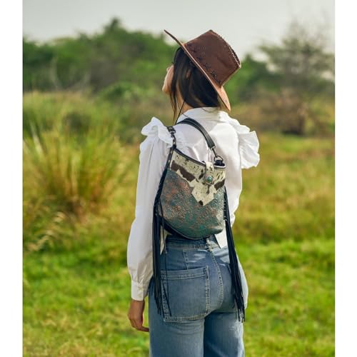 HOT ! Western Leather Shoulder Bag for Women - Upcycled Crossbody Bag with Tassel