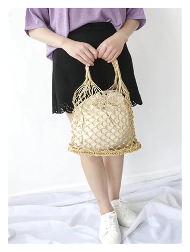 Bright Paper Ropes Woven Handbag Cotton Lining Straw Bag Female Reticulate Handbag Netted Beach Bag 7