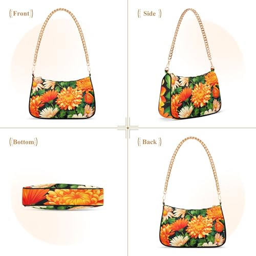 Orange Chrysanthemums Daisies Classic Purse Hobo Totes Women Tote Handbag Everyday Lady One Shoulder Bag Zipper Closure 6