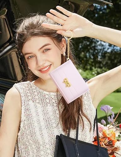 BIAOTIE Coquette Bow Wallet for Women, Small Slim Trifold Womens Wallet with Key chain Cute Aesthetic Card Holder ID Window for Girl (Pink) 6