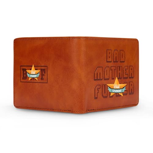 HOT ! Bad Mom Wallet Double Fold Embossed Brown Leather (brown)