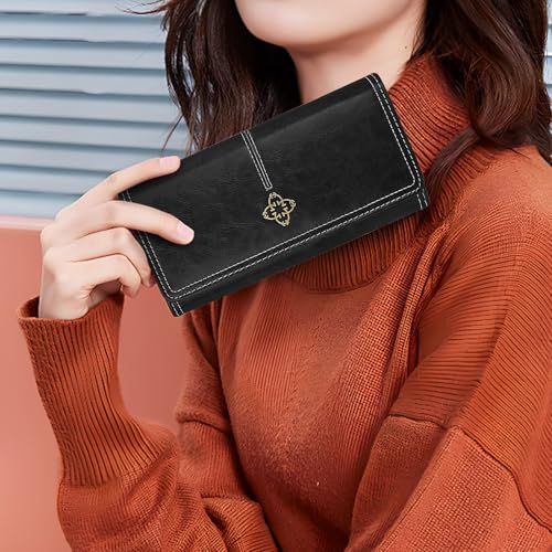 HOT ! Wallets for Women, Long Leather Credit Card Holder Large Capacity Womens Wallet with Flower Snap Multi Card Slots
