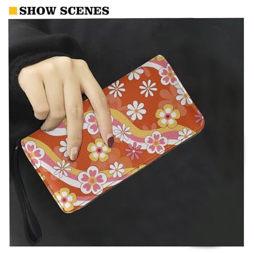 HOT ! Funny Womens Wallet with Zipper Beautiful Daisy Clutch Wallet for Women Soft Portable Leather Wristlet Purse Zipper Around Large Capacity Credit Card Holder