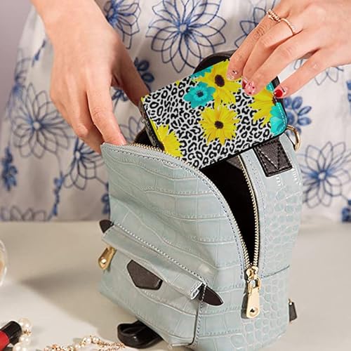 RFID Blocking Credit Card Wallets Leather Womens Wallet Zip Around Coin Purse Pouch with Zipper Yellow Turquoise Blue Flowers Black 5