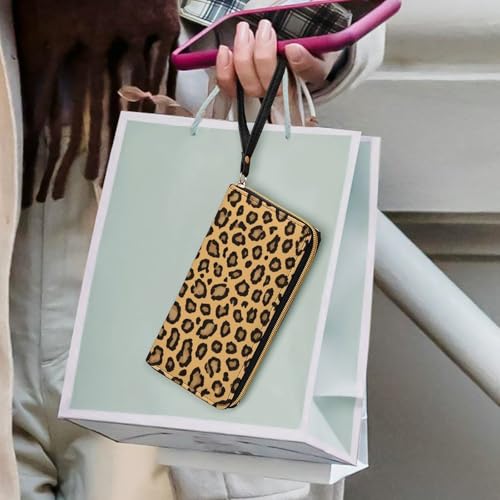 Leopard Print Women's Wallet Wristlet Zipper Purse with Hand Strap Travel Credit Card Holder for Daily Use Gifts 5