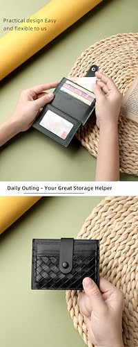 More information about Woven Leather Card Holder Wallet with Snap Button, Compact Multi-Card Slots,Leather card holder,credit card holder for women,small wallets woman,credit card holder,card holder wallet (Royal blue)