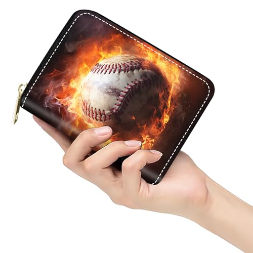 HOT ! Credit Card Holder Wallets for Women, Burning Baseball Design RFID Blocking Small Leather Card Case Wallet Zipper Accordion Wallets